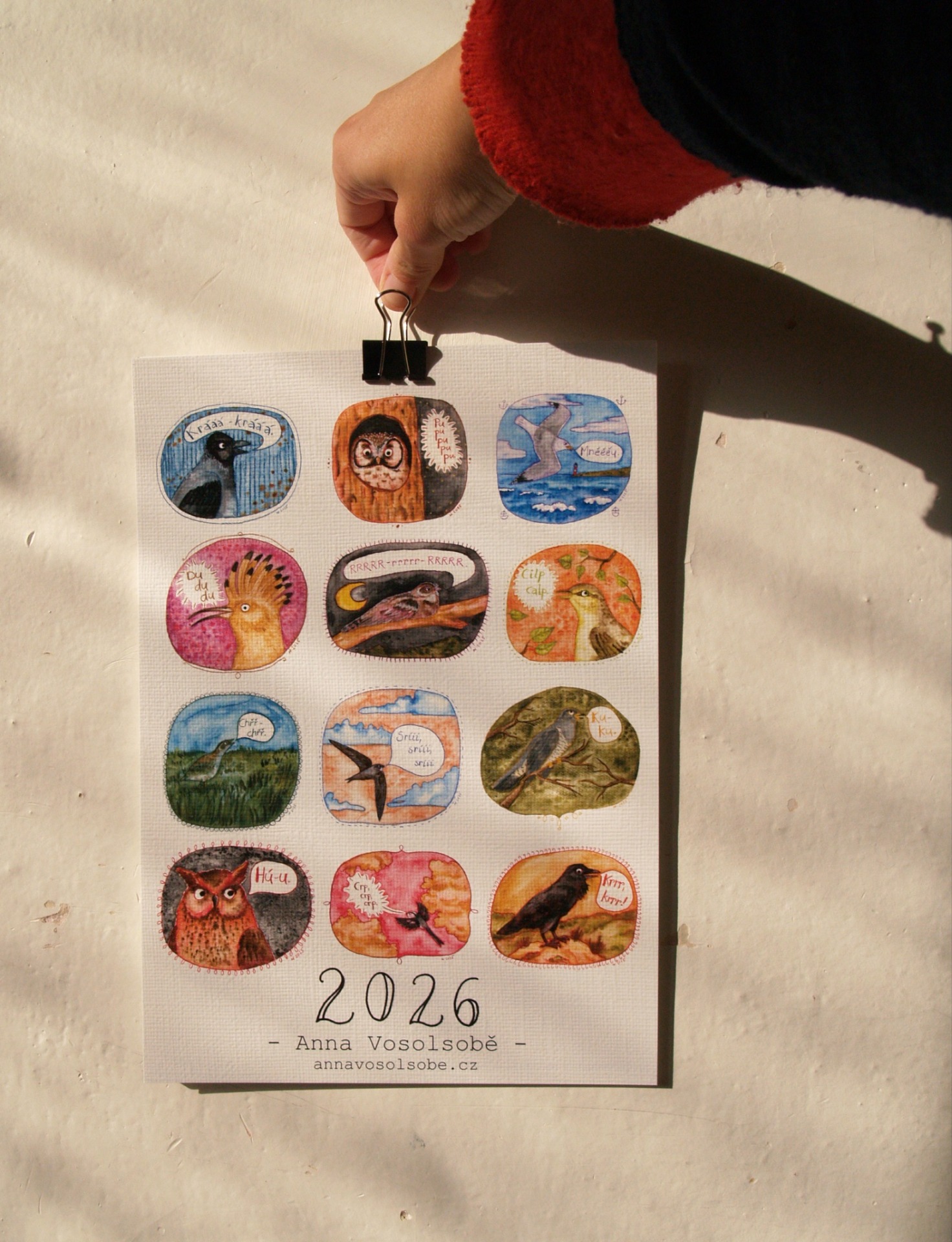 Kalendář vytvořený na základě autorských obrázků. Akvarel a akvarelové pastelky